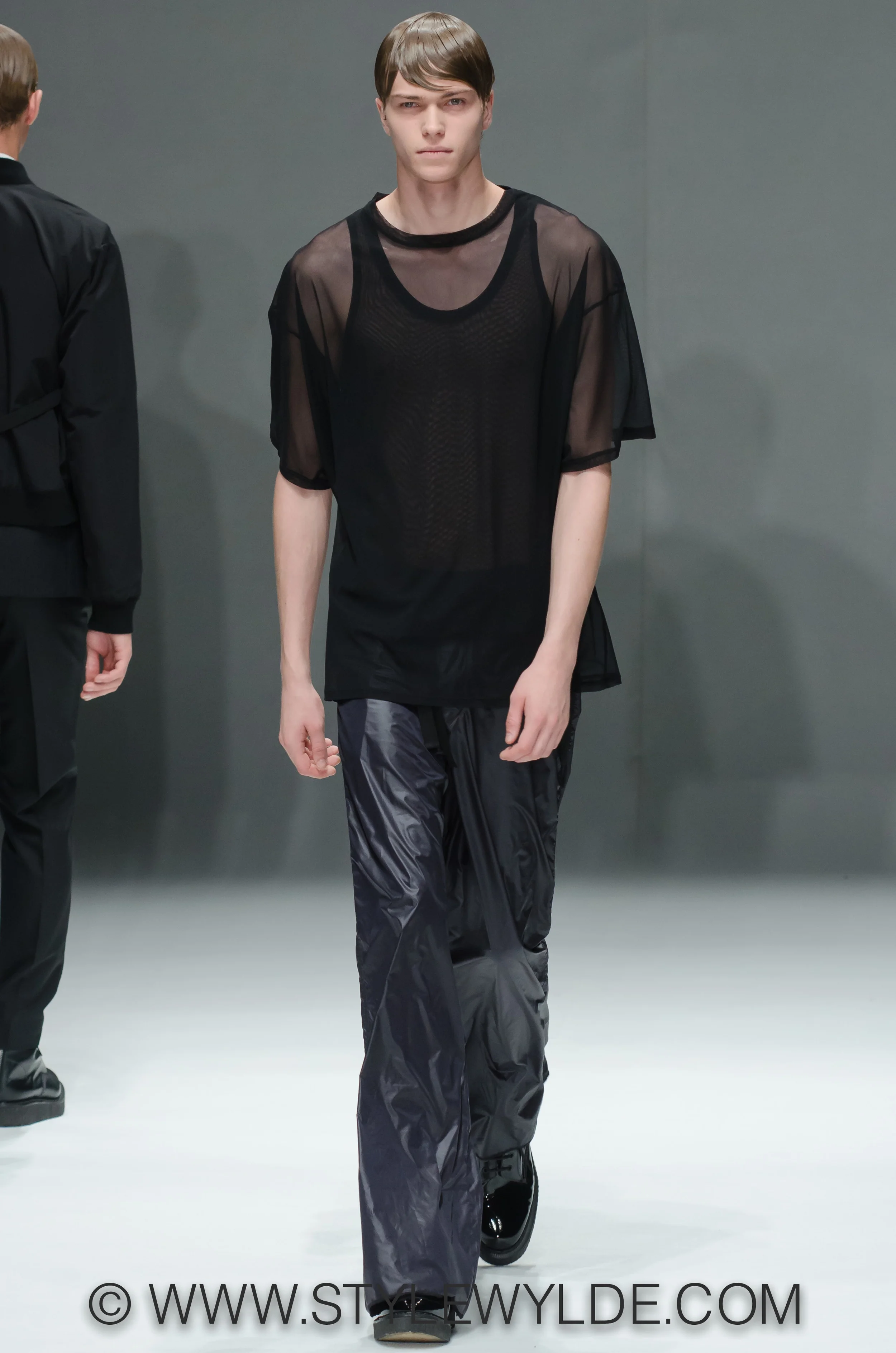 Garnering fans for their minimalistic, androgynous pieces that frequently inhabit the darker regions of the color spectrum, DRESSEDUNDRESSED designers Takeshi Kitazawa and Emiko Sato stayed true to their distinct point of view for the Spring 2015 season. Boxy silhouettes with relaxed construction in bright whites and taupes mixed it up with leaner looks in blacks and navys for high contrast and mass appeal.